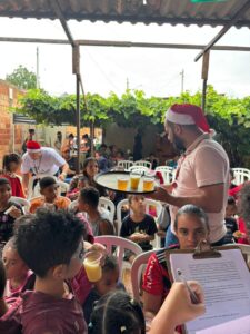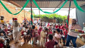 AO LONGO DOS ANOS, A AÇÃO SE TORNOU UMA TRADIÇÃO,IMPACTANDO POSITIVAMENTE MUITAS FAMÍLIAS. COM A COLABORAÇÃO DE EMPRESAS PARCEIRAS, VOLUNTÁRIOS E DOADORES, CONSEGUIMOS DISTRIBUIR CESTAS BÁSICAS, BRINQUEDOS E ALIMENTOS, ALÉM DE PROMOVER ATIVIDADES RECREATIVAS E EDUCATIVAS QUE ESTREITAMOS LAÇOS ENTRE OS MEMBROS DA COMUNIDADE. A CADA EDIÇÃO,BUSCAMOS TRANSFORMAR VIDAS E CRIAR UM AMBIENTE MAIS ACOLHEDOR E UNIDO.